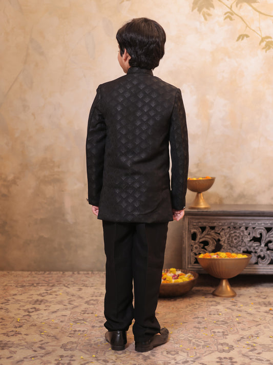 Boys Black Jacquard Full Sleeves Sequins and Embroidery Sherwani