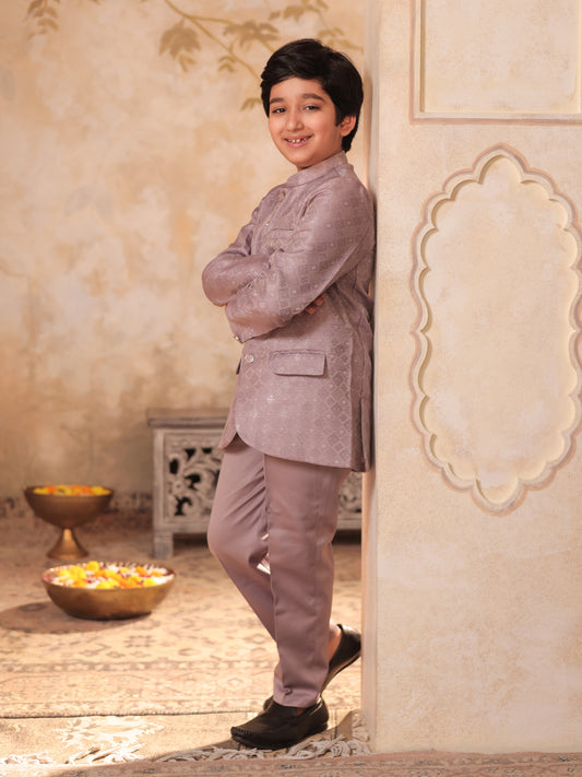 Boys Mauve Jacquard Full Sleeves Sequins and Embroidery Sherwani