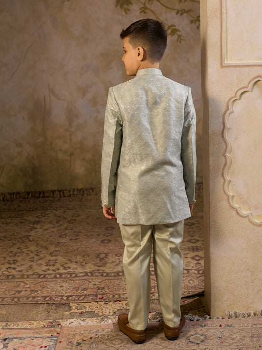 Boys Pista Jacquard Full Sleeves Sequins and Embroidery Sherwani