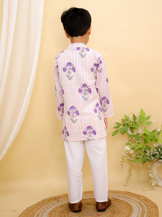 AJ Dezines Purple Cotton Full sleeves Floral Print Kurta Pyjama Set