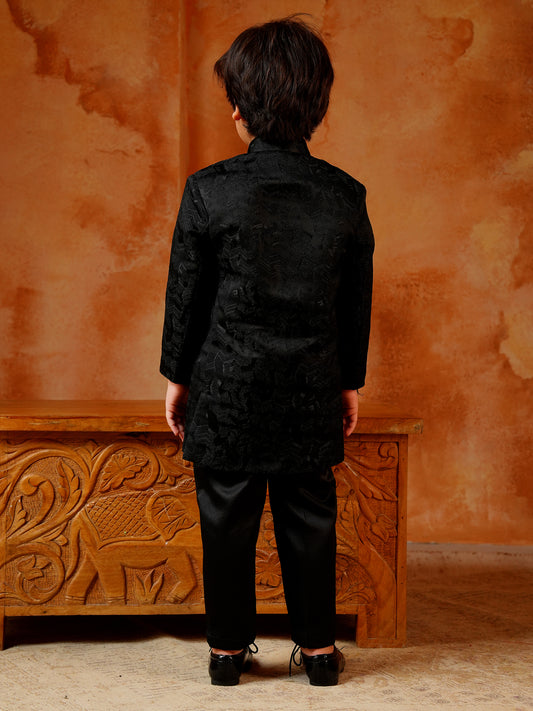 AJ Dezines Black Jacquard Full Sleeves Sequins and Embroidery Sherwani