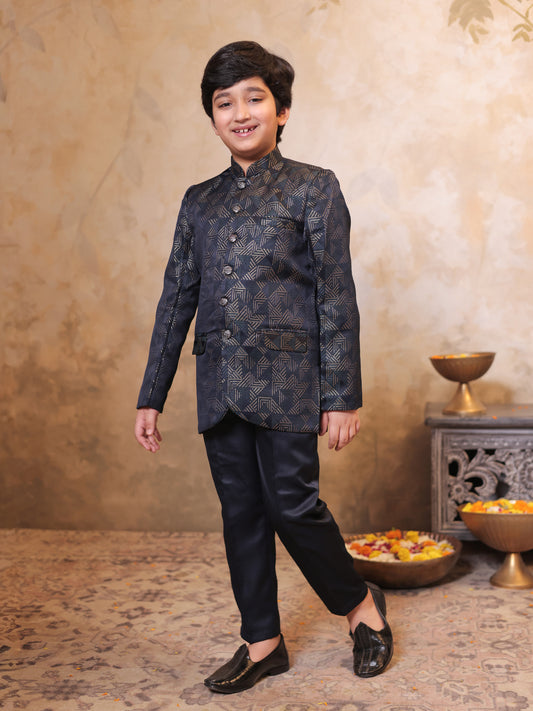 Boys Blue Jacquard Full Sleeves Embroidery Sherwani