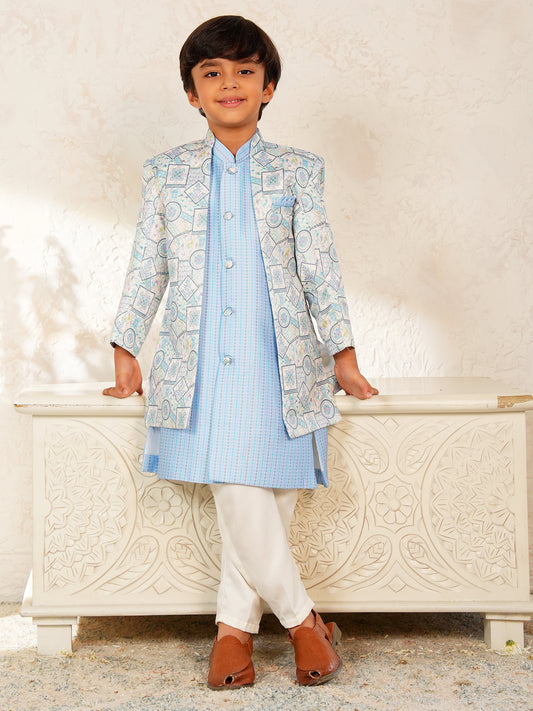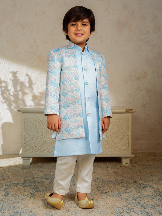 AJ Dezines Sky Blue Jacquard Full Sleeves Rich Embroidery Sherwani