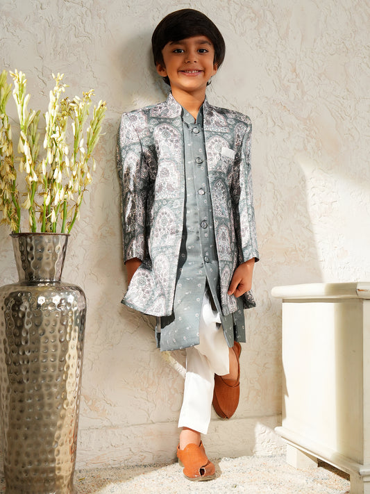 AJ Dezines Grey Jacquard Full Sleeves Rich Floral Embroidery Sherwani