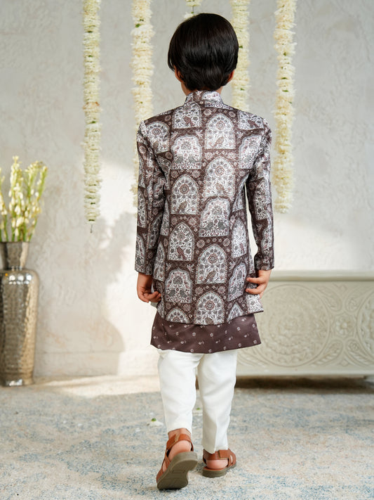 AJ Dezines Brown Jacquard Full Sleeves Rich Floral Embroidery Sherwani