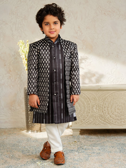 AJ Dezines Black Jacquard Full Sleeves Rich Embroidery Sherwani