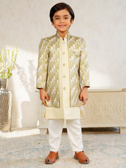 AJ Dezines Yellow Jacquard Full Sleeves Rich Embroidery Sherwani