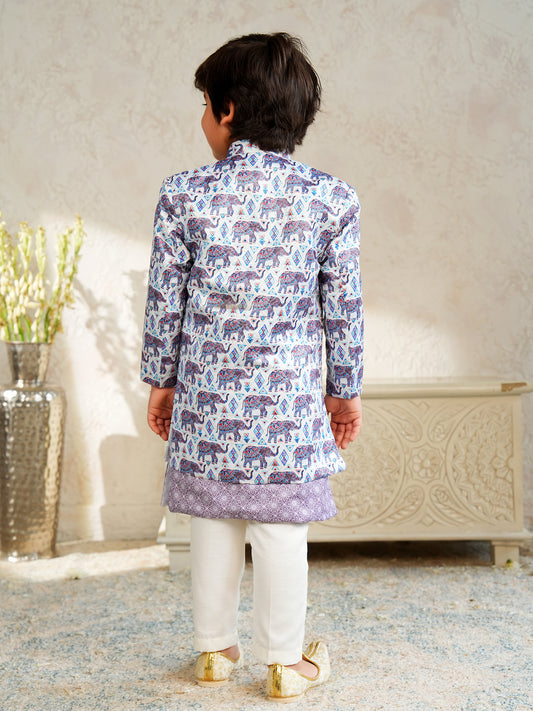 AJ Dezines Purple Jacquard Full Sleeves Rich Elephant Embroidery Sherwani