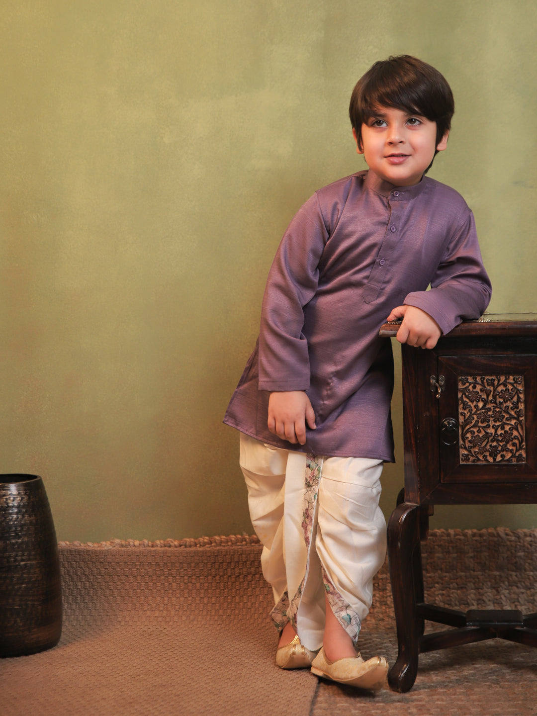 Purple Cotton Full Sleeves Floral Printed Dhoti Set