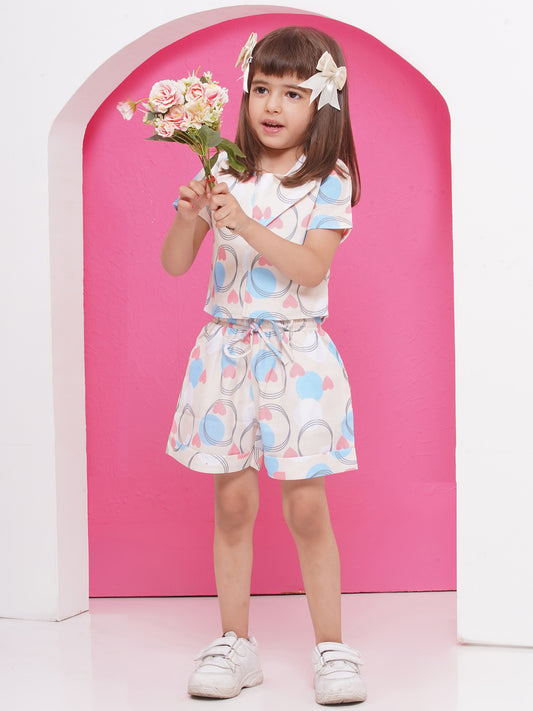 Aj Dezines Multi-Color Pure Cotton Half-Sleeves Love Print Half Pant And Jacket Co-Ords Set For Girls