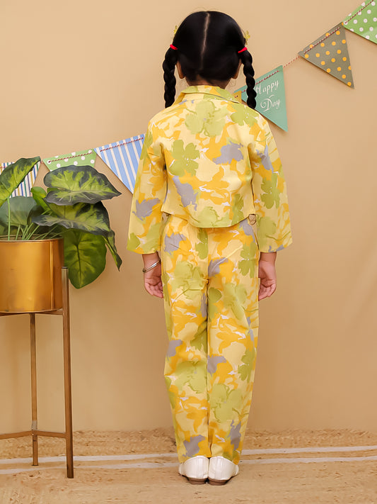 Aj Dezines Yellow Cotton Full sleeves Floral Co-Ords Full-sleeves for Girls