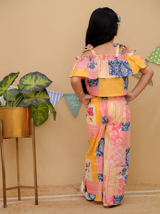 Aj Dezines Multi Cotton Half Sleeves Floral Co-Ords for Girls