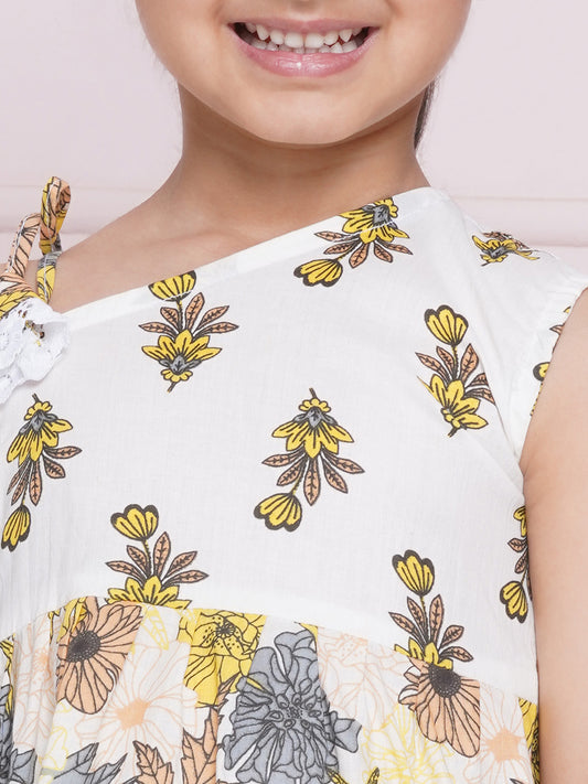 Kids Girls Yellow Floral Print Cotton CO-Ords Set