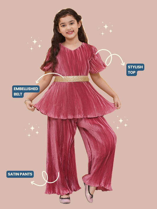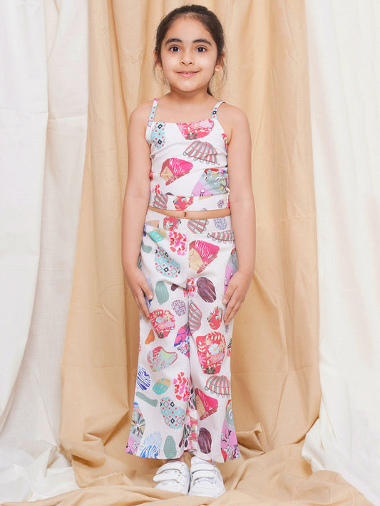Kids Girls Pink Printed Cotton CO-Ords Set