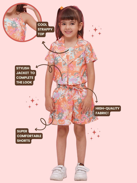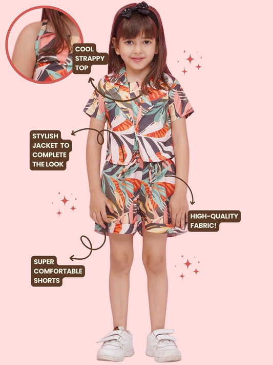 MULTI-COLOR Pure Cotton Half Sleeves abstract Print Half pant and Jacket Co-Ords Set for Girls