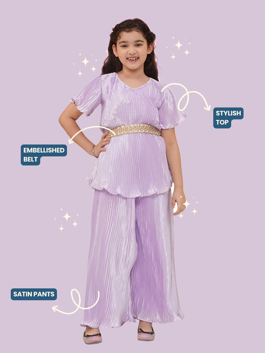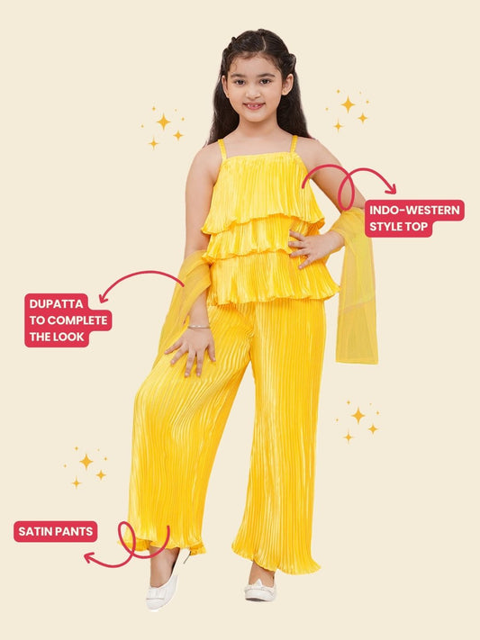 Satin Yellow Sleeveless Indo Western with dupatta for Girls