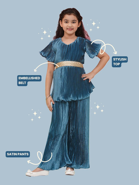 Kids Girls Firozi Printed Cotton CO-Ords Set
