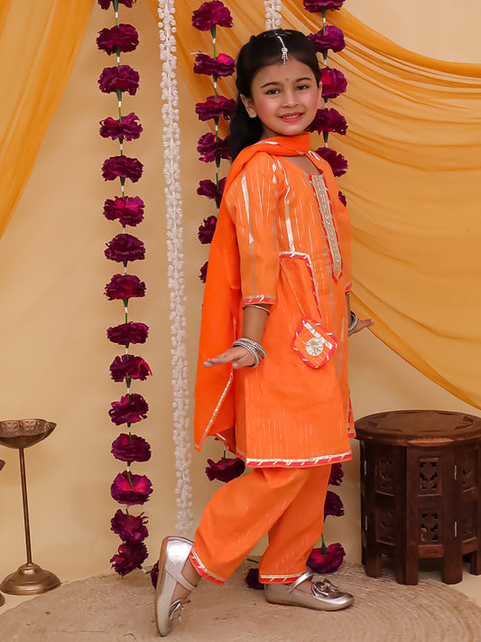 Girls Orange Cotton Sleeveless Lurex and Gotta Work Girls Suit Set