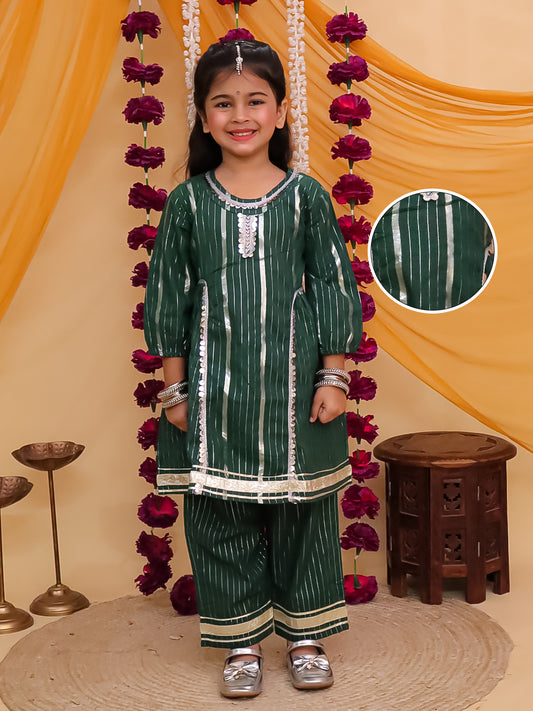 Dark Green Cotton Sleeveless Lurex and Gotta Work Girls Suit Set