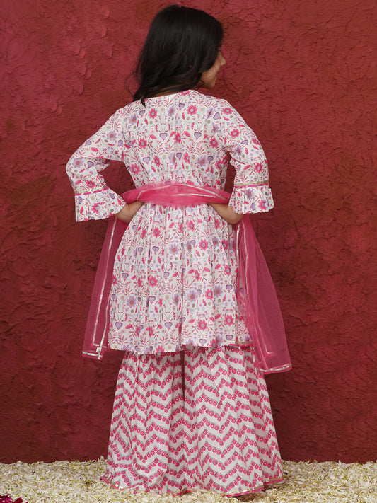 AJ Dezines Pink Sleeveless Floral Print Cotton Girls Suit Set For Girls