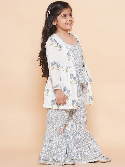 Kids Girls Grey Floral Print Cotton Sharara