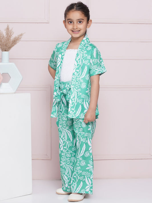 Kids Girls Green Tropical Print Cotton CO-Ords Set