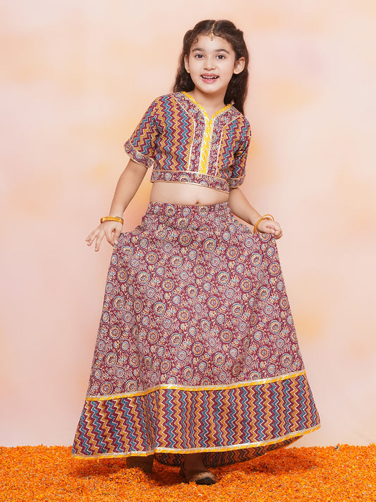 Kids Girls Maroon Zig Zag Cotton Lehenga Choli