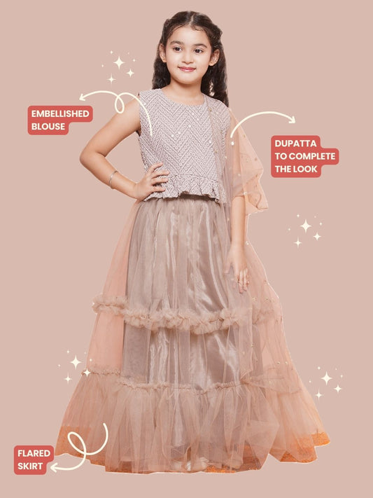 Kids Girls Fawn Chikankari Georgette Lehenga Choli