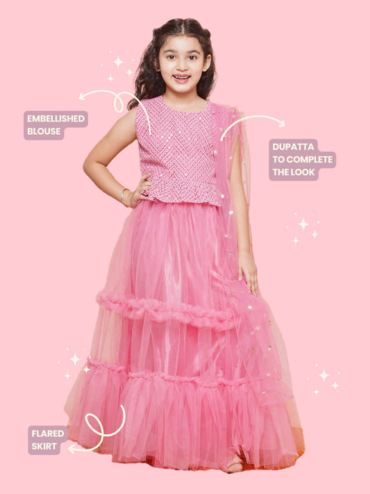Kids Girls Pink Chikankari Georgette Lehenga Choli