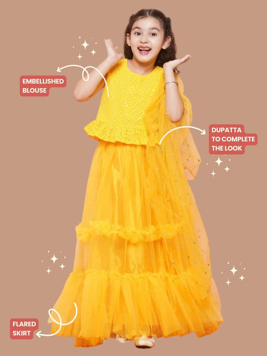 Kids Girls Yellow Chikankari Georgette Lehenga Choli