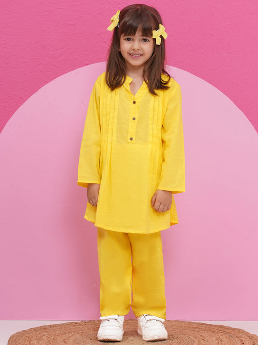 Aj Dezines Yellow Pure Cotton 3-4Th Sleeves Solid Co-Ords For Girls