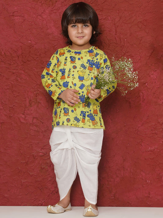 Aj Dezines Lime Cotton Full Sleeves Pepa Cartoon Print Dhoti Set For Boys