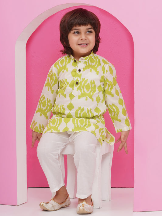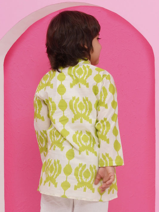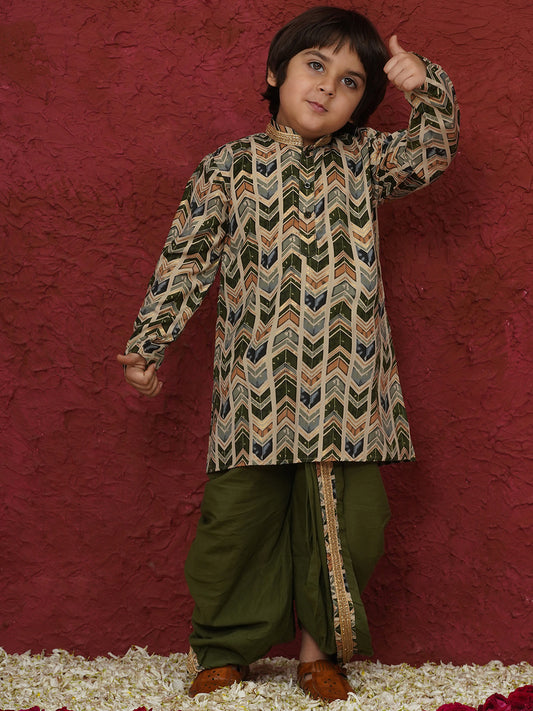 Aj Dezines Green Pure Cotton Full Sleeves Abstract Print Dhoti Set For Boys