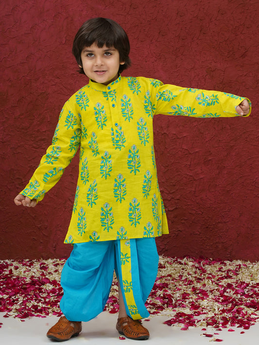 Aj Dezines Green Cotton Full sleeves Floral Print Dhoti Kurta for Boys