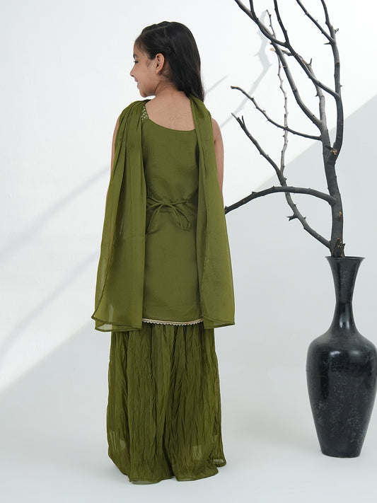 Aj Dezines Green Cotton Sleeveless Floral Print Girls Kurti and Sharara Set with Gotta Work