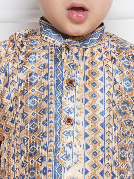 Kids Boys BEIGE Printed Silk Blend Kurta Pyjama Set