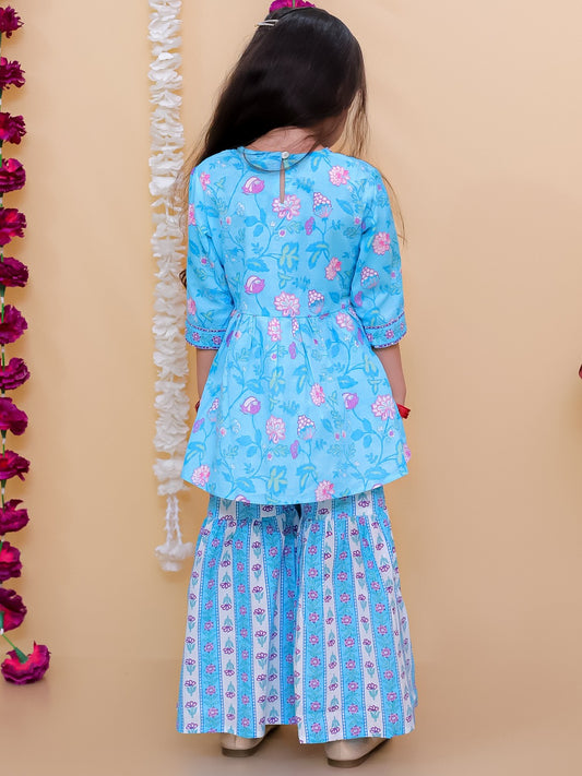 Aj Dezines Sky Blue 3/4th Sleeves Floral Print Cotton Girls Suit Set For Girls