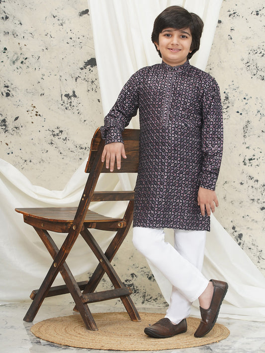 AJ Dezines Purple Full sleeves Sequenced Cotton Blend Kurta For Boys