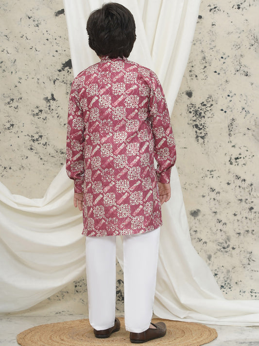 AJ Dezines Pink Full sleeves Floral Print Cotton Kurta Pyjama For Boys