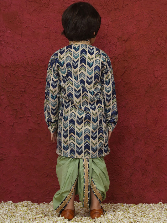 Aj Dezines Pista Cotton Full sleeves Abstract Print Dhoti Kurta for Boys