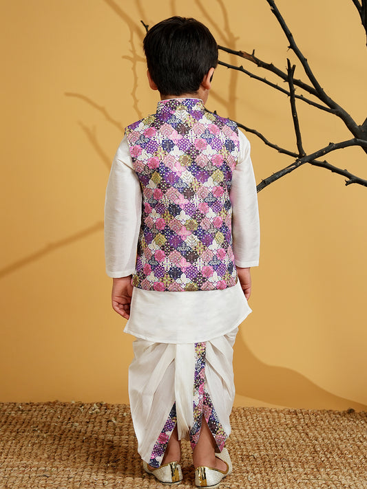 AJ Dezines Purple Silk Blend Full Sleeves Embroidered Dhoti Set