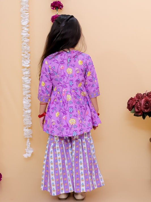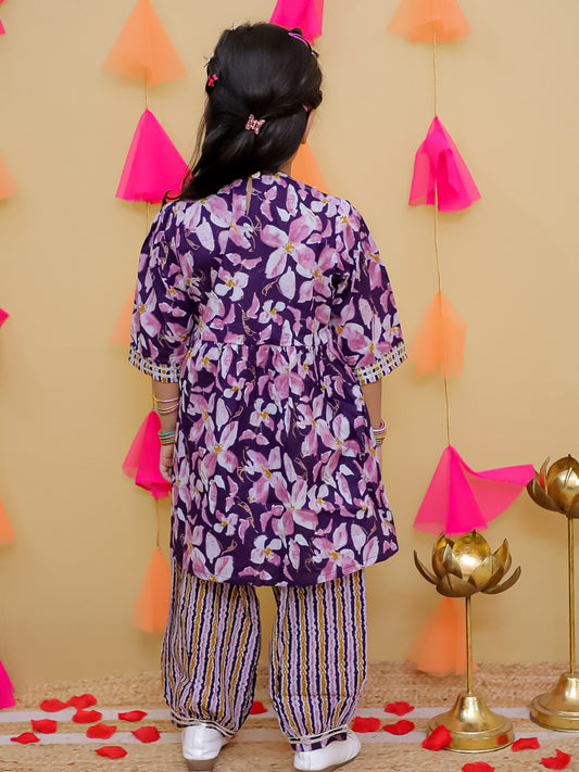 Aj Dezines Purple 3/4th Sleeves Floral Print Cotton Girls Suit Set For Girls