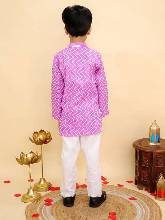 Aj Dezines Purple Cotton Full sleeves Zig-Zag Printed Kurta Pyjama Set for Boys