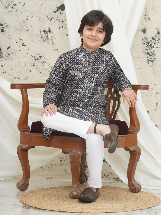 Aj Dezines Multi Full sleeves Sequenced Cotton Blend Kurta Pyjama For Boys