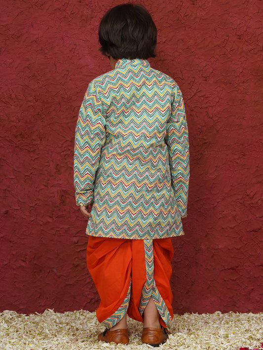 Aj Dezines Orange Cotton Full sleeves Zig-zag print Dhoti Kurta for Boys