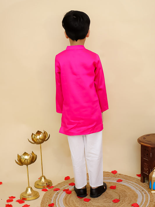 AJ Dezines Pink Cotton Full sleeves Solid Kurta Pyjama Set