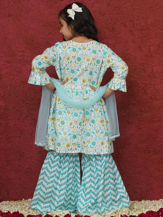 AJ Dezines Blue 3/4th Sleeves Floral Print Cotton Girls Suit Set For Girls