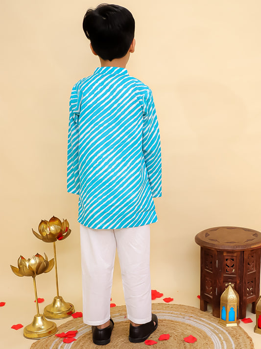 AJ Dezines Blue Cotton Full sleeves Leheriya Print Kurta Pyjama Set