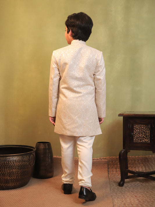 AJ Dezines Cream Jacquard Full Sleeves Rich Floral Embroidery Sherwani