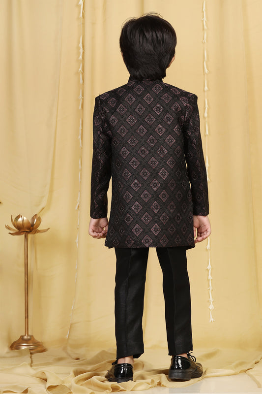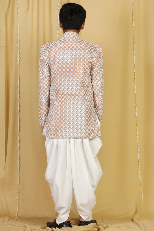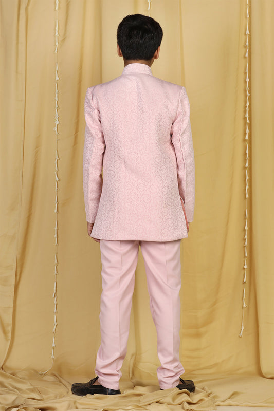 Kids Boys Pink Printed Polyester Cotton Sherwani